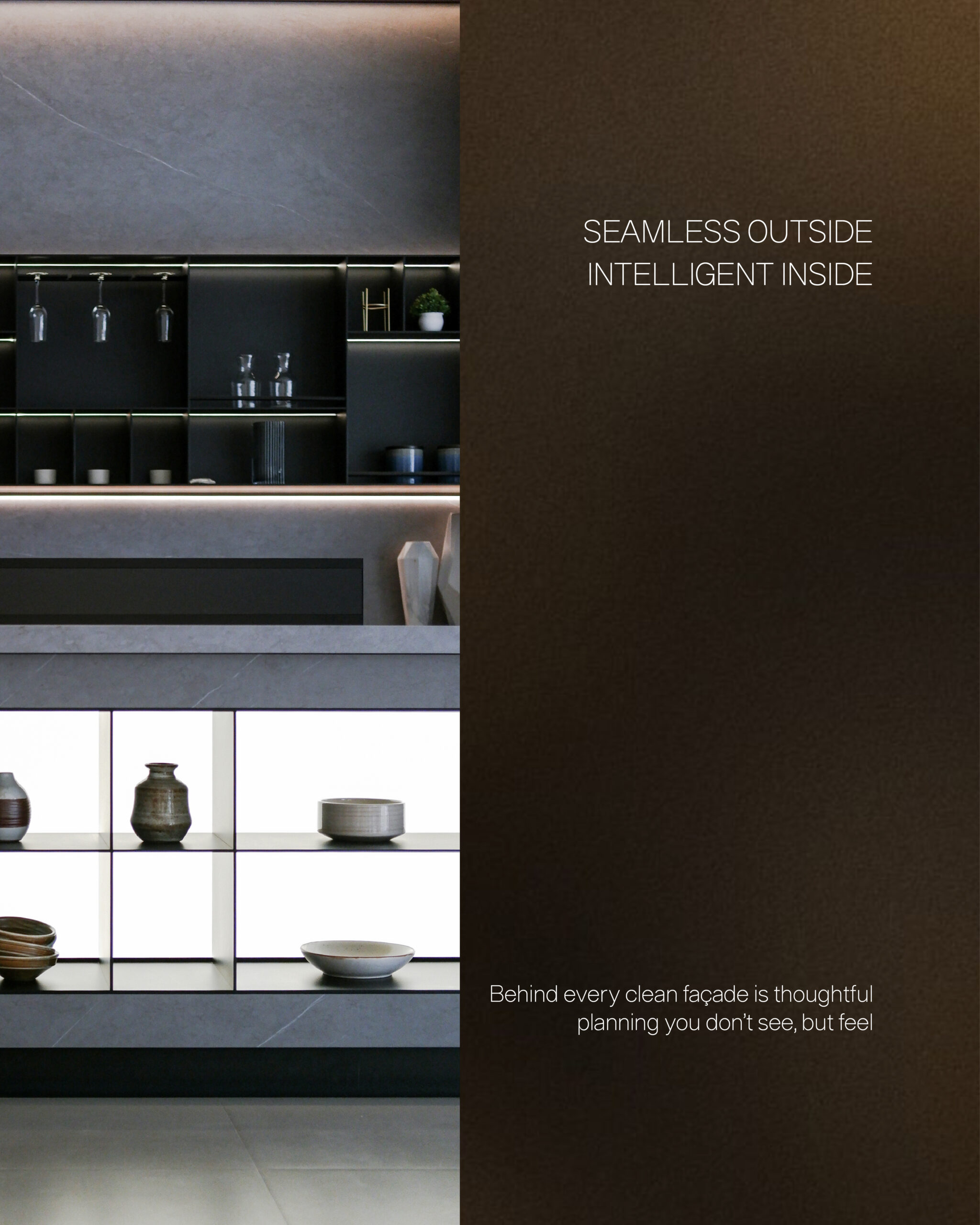 We consciously avoid fragile, high-maintenance finishes that easily show scratches or fingerprints. Surfaces are selected for resilience, longevity, and understated refinement.